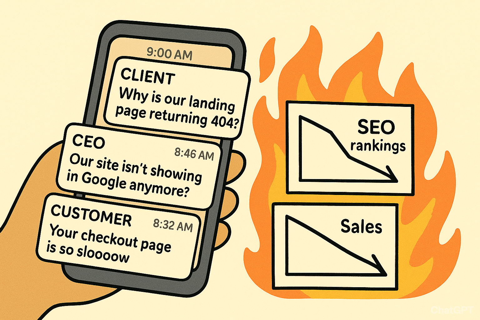 Your website broke 3 hours ago. Your client just texted.